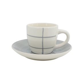 TAZA CAFE 90ML C/PLATO CERAMICA QUADRA BLANCO/GRIS
